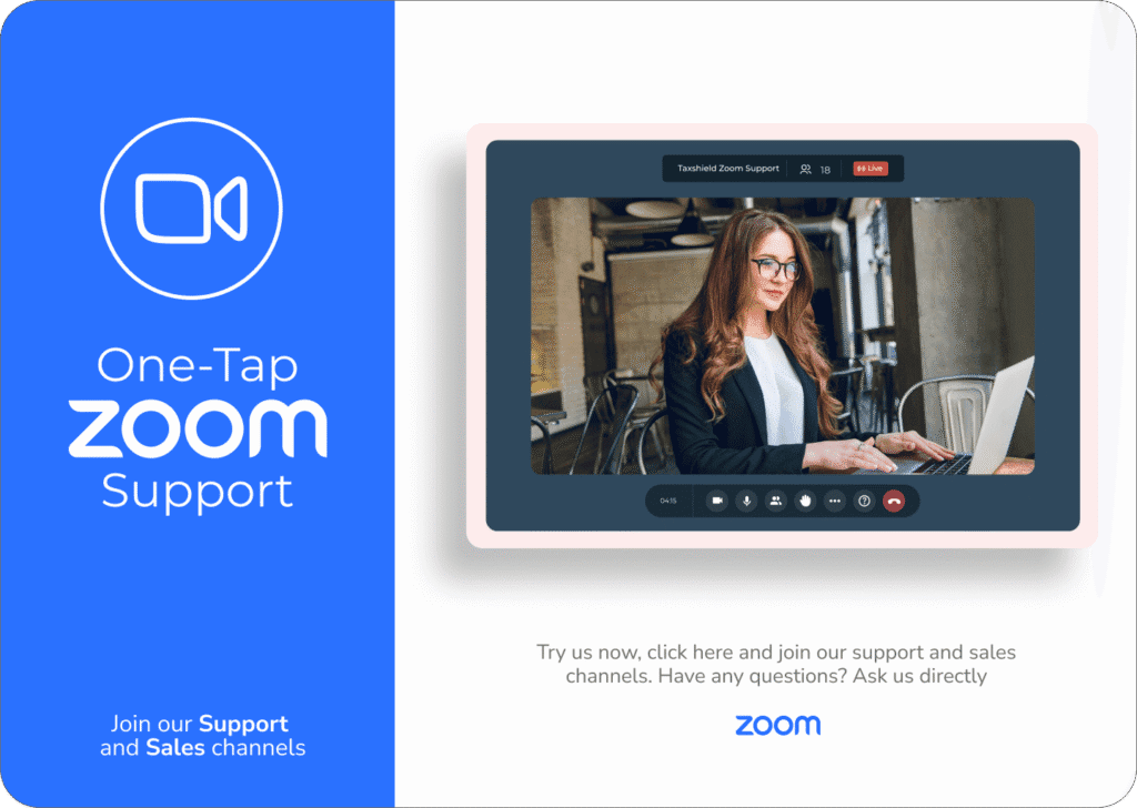 Introducing our new Zoom support channels for both Sales and Support at Taxshield! Connect with us instantly and get all your questions answered in real time. Our dedicated team is here to assist you with any inquiries you have. Experience seamless communication and top-notch support by joining our Zoom channels today. Try it now and discover the ease of getting the help you need!